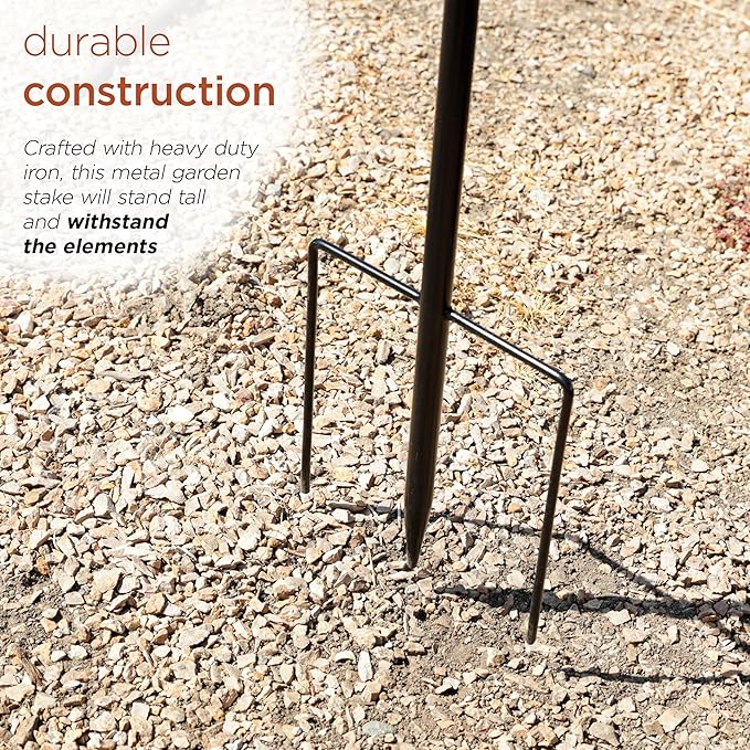 - TALL GARDEN STAKE: Standing at an impressive 15"L x 6"W x 55"H, this garden stake will tower over flower beds and bushes