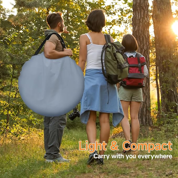 - Effortless Setup & Compact Storage: Benefit from our innovative pop-up design with automatic fiberglass ribs that make setup a breeze. The tent folds down easily, fitting into a compact carry bag (39.3" diameter, 2.4" height), making it perfect for travel, camping, and easy storage. However, for optimal safety and performance, avoid using in wind conditions exceeding 24-30.8 miles/hour.