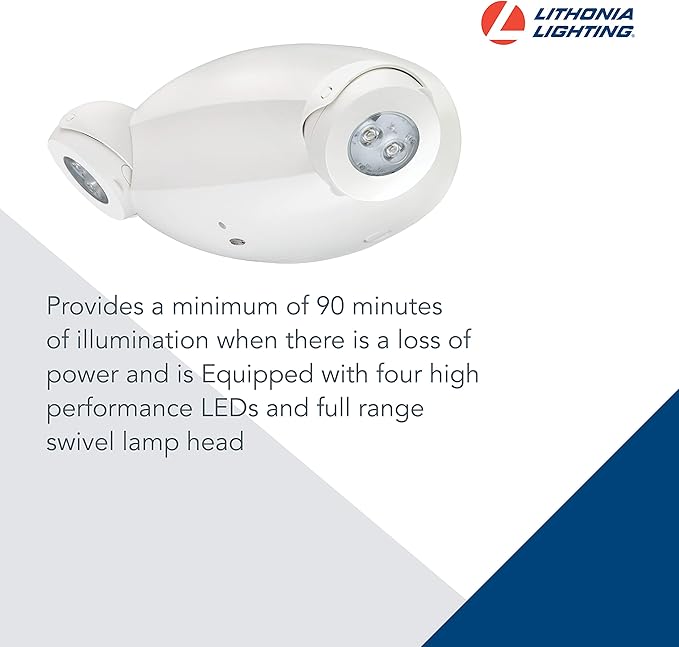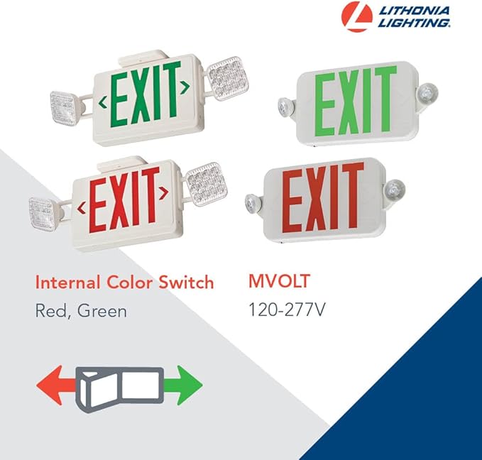 Lithonia Lighting ELM4L Quantum LED Emergency Light, Manual Testing, 640 Lumens, White & RD M6 ECRG LED Emergency Light/Exit Combo Red/Green switchable, Round Lamp Heads, White