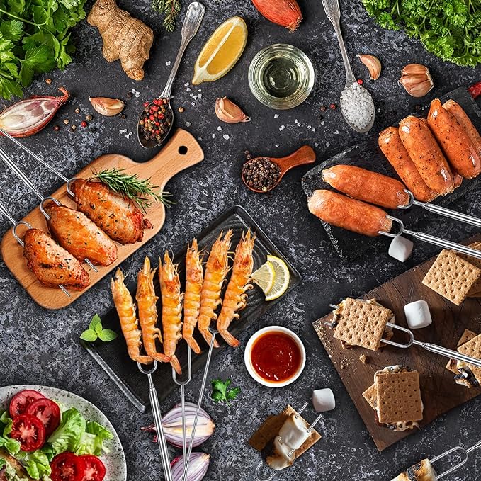 - 【Wide Application】- The camping essentials smores kit can be used to grill marshmallows, sausages, hot dogs, onions, wieners, steaks, meat, chicken wings, vegetables and more. Smores sticks for fire pit long satisfy you patio firepits, backyard fire pit, bonfire pit, or campfire, outdoors, picnic and camp needs.