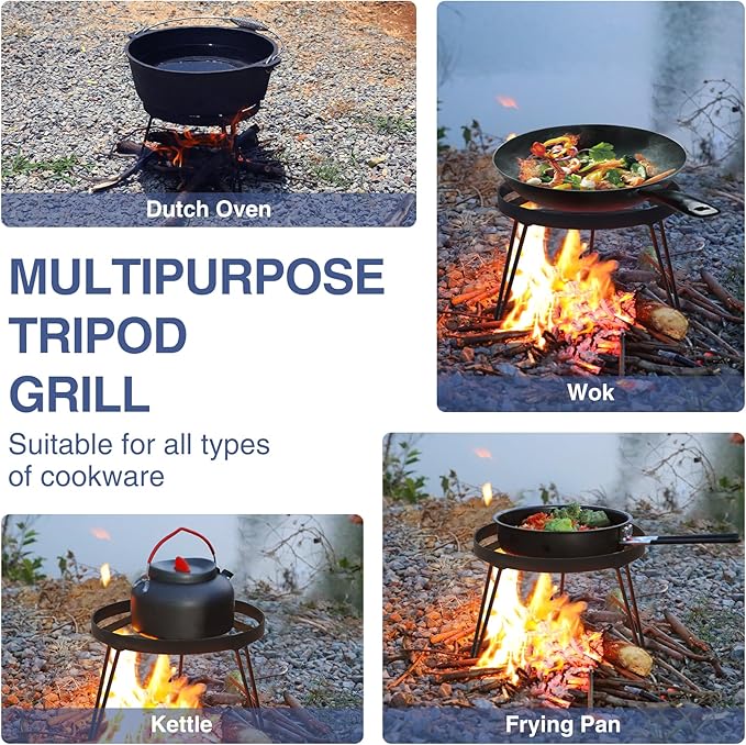 - Various Ways of Using: This tripod pot holder can be compatible with a variety of cookware such as dutch pots, grilling nets, wok, frying pan, kettle and more. It can be perfect for your outdoor cooking needs.