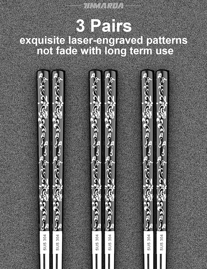 - EXQUISITE DESIGN: Chopsticks reusable with nice engraving pattern. Elegant and stylish Asian court style chop sticks. Nice titanium chopsticks make eating at home feel like a fancy restaurant experience. Spice up your meal time