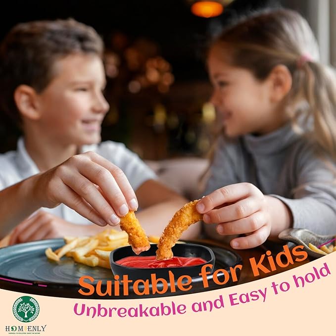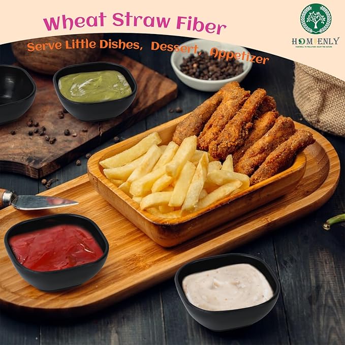 - SOY SAUCE DISHES: 4.5 oz wheat straw dip bowls, perfect for individual portion serving, such as ketchup for dipping chip, butter for dripping shrimp, chutney, and olive oil. And they are able to serve little dishes, dessert, appetizer and so on.