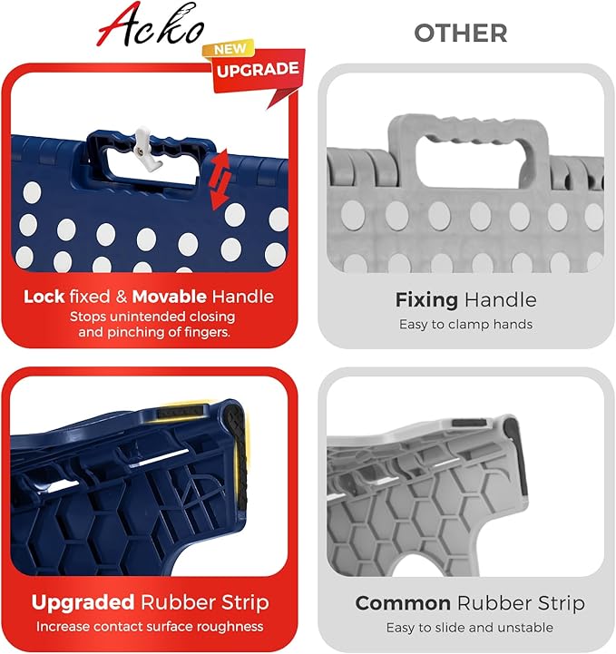 - Safety-Focused Design: Our lightweight folding step stool equipped with a non-slip surface, movable handle and the bottom corners are upgraded to black non-slip dot textured rubber straps to prevent slips and finger traps, improving a secure user experience.