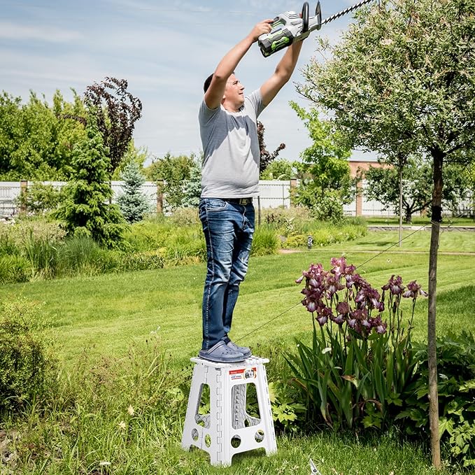 ACSTEP Folding Step Stool 17.5 Inch Heavy Duty Step Stool Foldable for Adults and Kids, Collapsible Stepping Stool with Handle, Non Slip Folding Stools for Kitchen Hold Up to 400lbs (White 1PC)