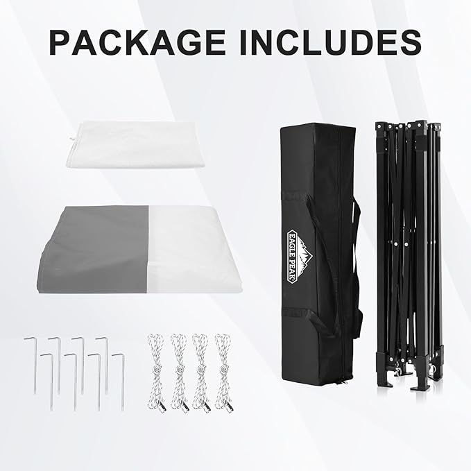 - EAGLE PEAK PROMISE: EAGLE PEAK offers a 1-year limited after sale protection from the original date of purchase. Unlike many other canopy manufacturers, EAGLE PEAK offers this for our frames, canopies and bags! If you have any other questions, please contact our professional service team .
