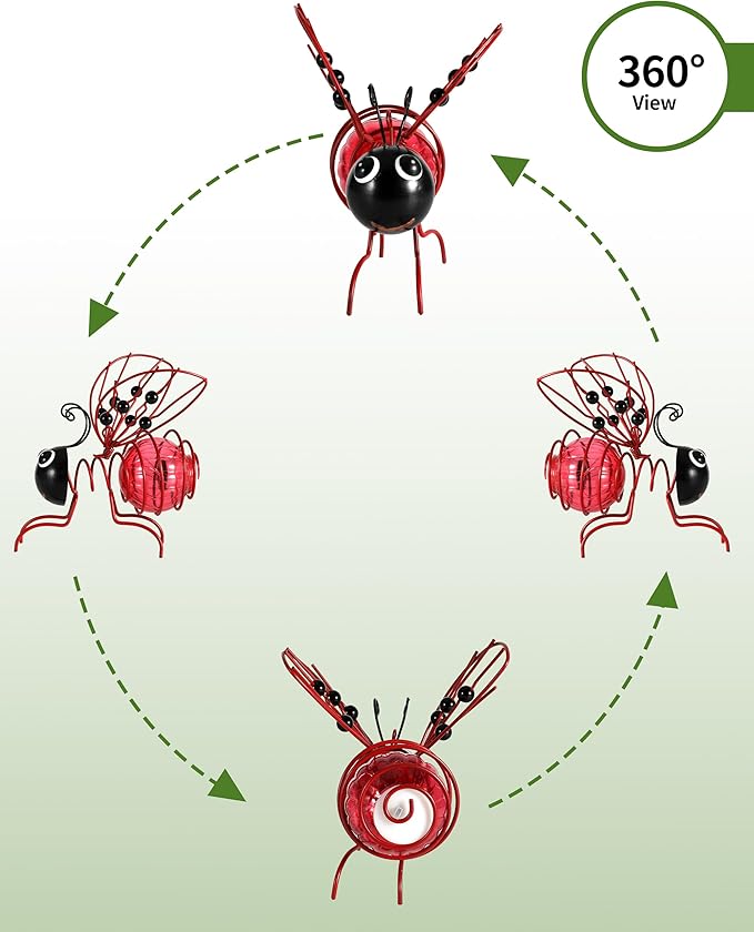 iStatue Solar-Powered Hanging Metal Ladybug Light Garden Decor | Lady Bug Sculpture with Bouncy Springs | Summer Outdoor Art Decorations (Red)