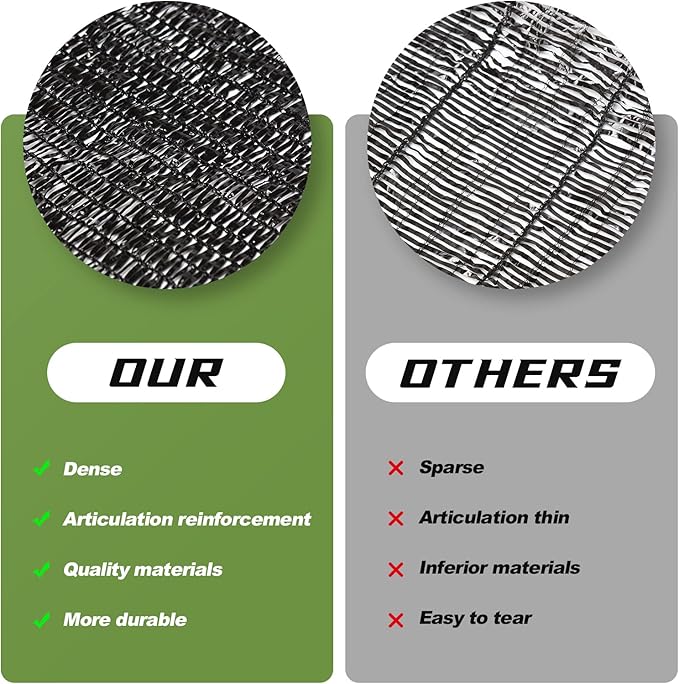 - ?�Quality Material??0% shade rate. Made of high-quality polyethylene(HDPE) material. It effectively blocks most of the sunlight and heat while allowing water and air through.