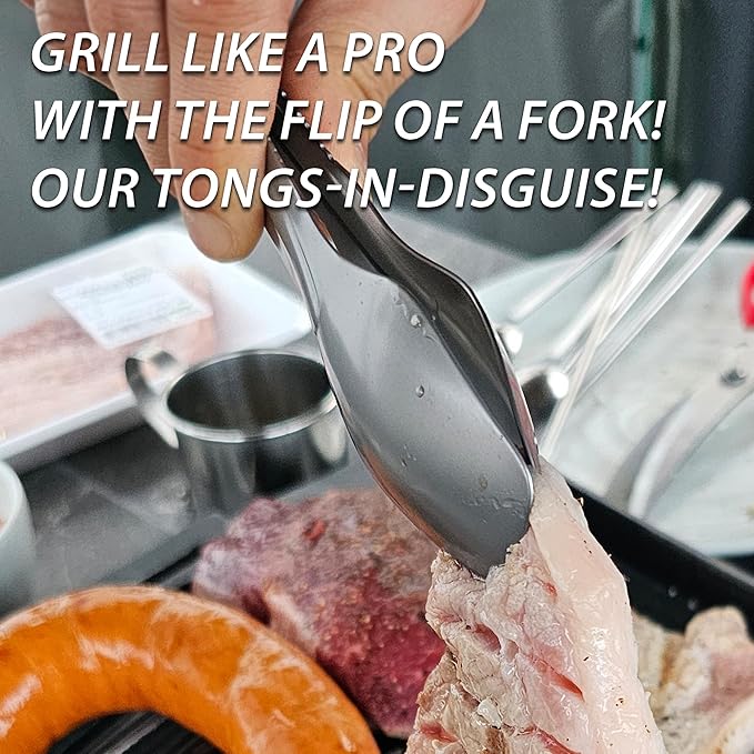 - Versatility: With its innovative design, our PortableAnd utensil offers unparalleled versatility, allowing you to perform a range of cooking tasks outdoors with ease. From flipping food on the grill with the tongs to serving and eating with the spoon or fork functions, it's the ultimate all-in-one solution for outdoor culinary adventures.