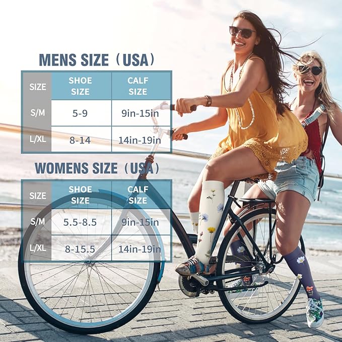 - GIFT IDEA & SATISFACTION GUARANTEED- What's more commendable is ...this is a very suitable compression socks for sharing,a variety of styles,suitable for all kinds of people,you can give them as a gift to your friends,families.It has universal applicability,no matter outside or inside,you can benefit enormously from our progressive compression technology.RISK free,if you are not happy with the purchase for any reasons,contact us for an exchange or refund with no questions asked.