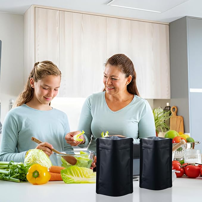 200 Pcs Mylar Bags for Food Storage 5x7 Smell Proof Bag Stand Up, Foil Resealable Bags for Food, Freeze Dried Candy Packaging Sealable Pouch Jewelry Bracelet Pouch for Small Business, Black