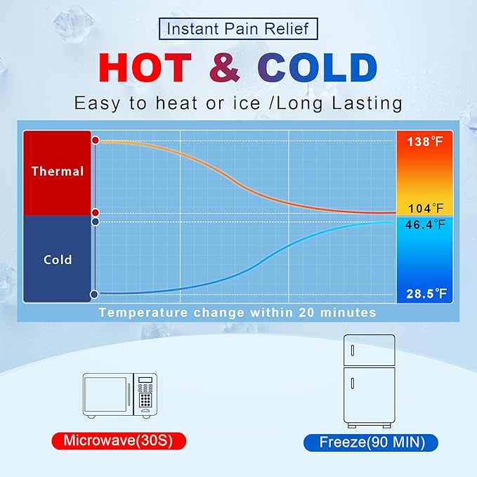 - Heat & Cold Compress: The ice pack can be frozen for cold in the freezer and heated for warm in the microwave. The coldness will reduce swelling and inflammation and the heat will accelerate the progress of recovery. These packs will meet the demands of heat or cold therapy during your injury recovery
