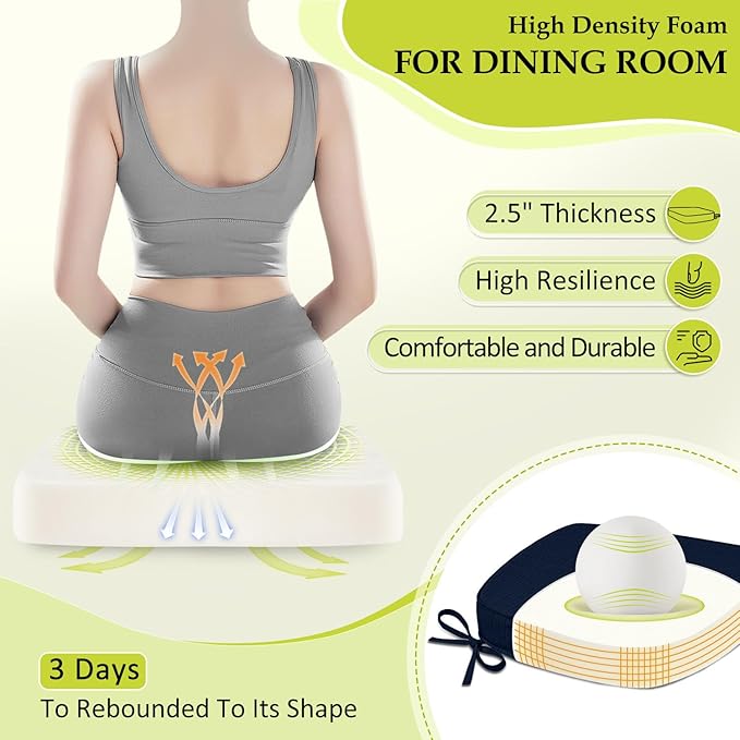 - Double Non-slip Design: Featuring 2 adjustable straps to secure the cushion to chair legs and a textured non-slip silicone base, these chair pads stay firmly in place on smooth surfaces. The dual anchoring system ensures stability, allowing you to sit comfortably without frequent readjustments