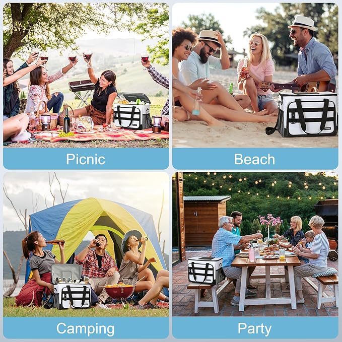 Soft Cooler Bag, 30 Cans Collapsible Cooler with Adjustable Shoulder Straps, White Ice Chest for Camping, Beach, Hiking, Picnic