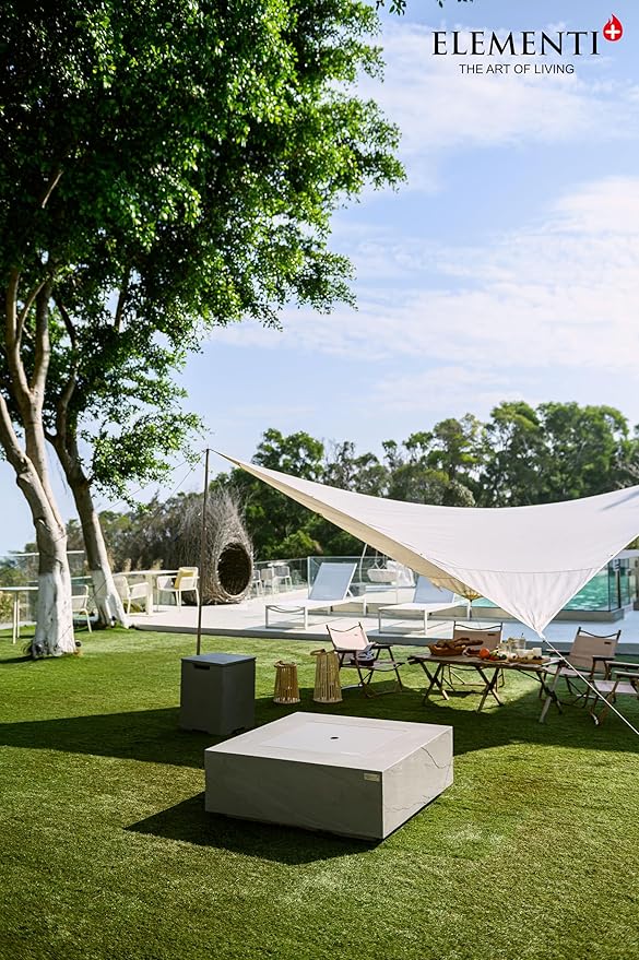 - ✅【Heavy Duty Outdoor Fire Pit】ELEMENTI+ Gas patio heater The body construction is Handcrafted glass-fiber reinforced concrete. The table is durable and finished to have a high resistance to heat. The whole body is SPACE GREY color Brighten up your quality of life with a backyard fire pit as your outdoor centerpiece that will have the reflections of dancing flames keeping you and your loved ones warm and cozy