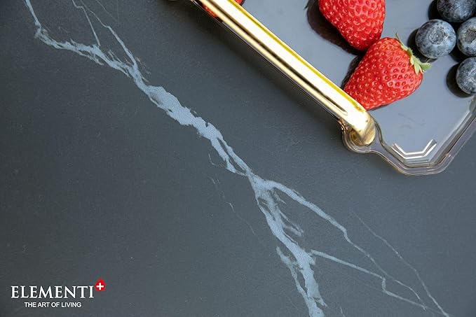 Elementi+ | Bundle Sofia Gas Fire Pit | Marble Porcelain & Metal Frame | 40" Square Fire Table | Electronic Ignition | Canvas Cover, Fire Glass & Burner Lid Included | Black | Natural Gas