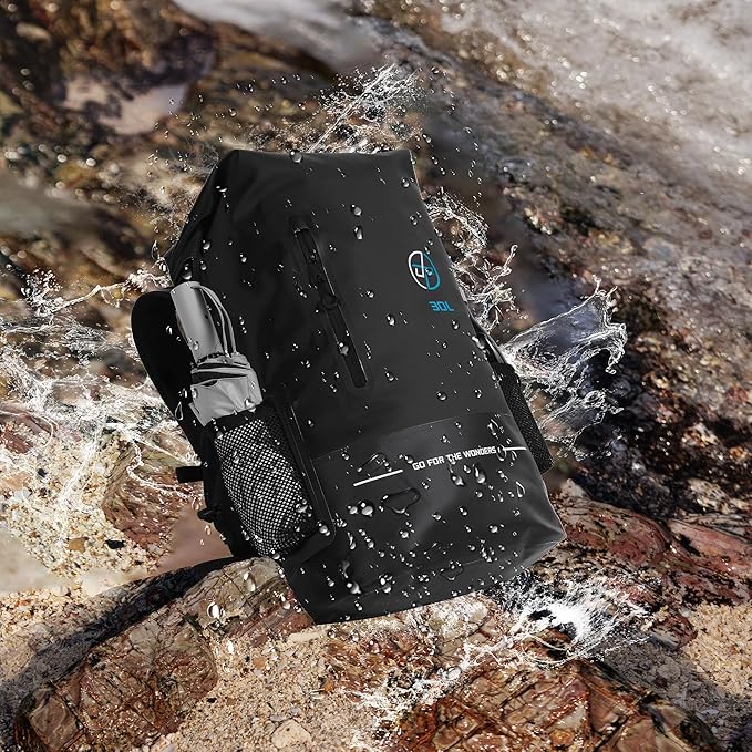 - Design: The front of the backpack is equipped with a zipper pocket adds a touch of fashion, The top of the waterproof dry bag has a zipper closed roll top, you can press the button up or down, and the side has a convenient closing net, easy to store water bottles, umbrellas and other items.
