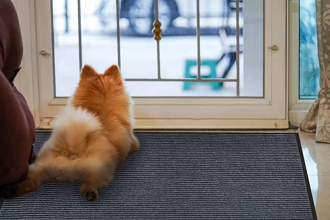 fani 2 PCS Heavy Duty Large Outdoor Indoor Entrance Doormat Grey Waterproof Low Profile Entrance Rug Front Door Mat Patio Anti-Skid Rubber Back, 35x60 inch (Grey)