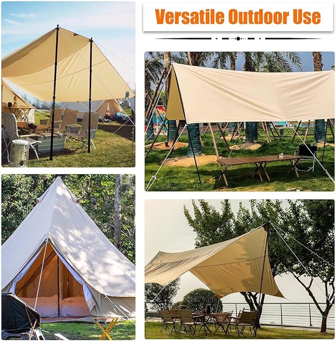 - TEAR AND SLIP-RESISTANT: Rubber caps on the top of the poles reduce sliding and can be used directly to support the tarps. The rubber caps are securely attached to the tarp poles and won't get lost. Additionally, the tips of the poles are equipped with anti-slip threads for enhanced wind protection.