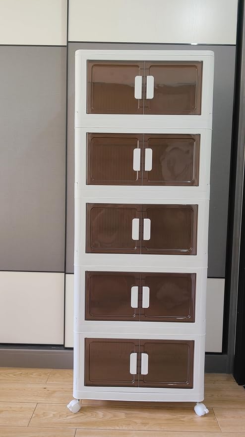 80 Gals Storage Bins with Lids - Folding Storage Box with Doors and Wheels, Collapsible Plastic Bins for Closets, Stackable Storage Organizer, (Extra Large-5Tiers)