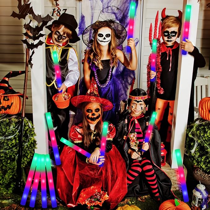 - Halloween Glow Sticks: Our LED Foam Glow Sticks are versatile and suitable for all types of parties, whether indoors or outdoors, especially at night. They make excellent party favors for birthdays, house parties, concerts, weddings, and even community Halloween carnivals.