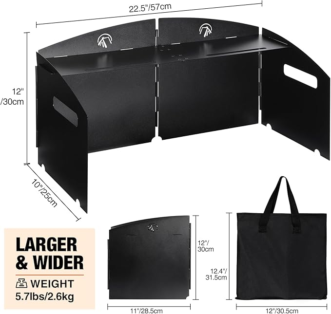 - Heavy-Duty 4-Panel Iron Windshield Crafted from 0.8mm thick iron plates, this windscreen’s interlocking 12”H x 10”W panels create a stable three-sided barrier against 30+ mph winds. The rust-resistant steel structure prevents tipping while maximizing fuel efficiency—reduce cooking time by 40% in harsh outdoor conditions.