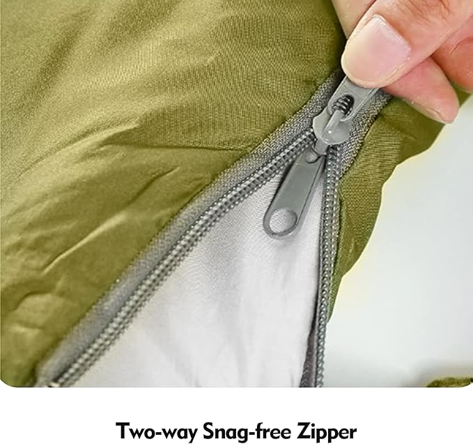 - DESIGNED FOR EXTREME CONDITIONS -- Crafted with double-layer construction and 400 GSM innovative fiber filling, our 2-person sleeping bag is engineered for maximum warmth and a soft, plush feel. This provides ample padding and comfort, making you feel like you're sleeping on a cloud, even in cold weather conditions.
