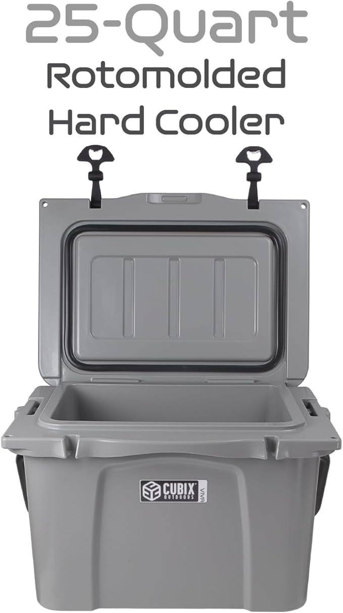 - Durable Construction: Built with military-grade rotomolded material, the Cubix Outdoors Viva 25QT Portable Cooler withstands drops, impacts, and extreme conditions, ensuring long-lasting durability for your outdoor adventures.