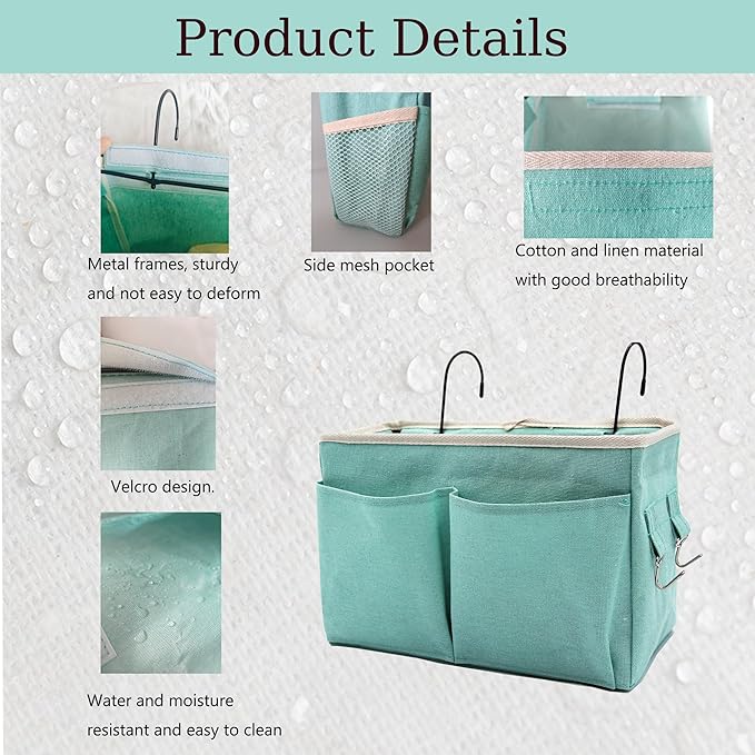 - 【 Premium Material 】The bedside caddy is made of Canvas and iron. make it strong and sturdy.The bedside storage caddy has 1 large pocket, 2 small pockets,1 small mesh pockets,and 2 hook up. You can storage your everything you want on bed, everything is well organized and within reach.
