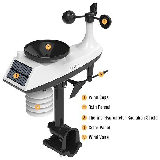 - Highly Accurate Outdoor Sensors: Trust in the precision of our versatile outdoor sensors, including a rain funnel, wind vane & speed cup, thermo-hygrometer radiation shield, and solar panel. The sensor is designed to provide accurate data with a communication range of up to 330 feet. They can also withstand harsh weather conditions, like hurricanes.