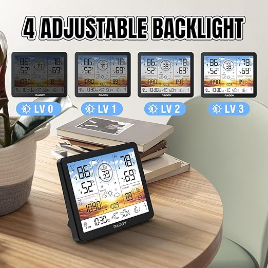 Raddy AG7 Weather Station Wireless Indoor Outdoor Thermometer, 7.4'' Digital Color Display Atomic Weather Clock, Temperature Humidity Monitor with Weather Forecast and Barometric Pressure