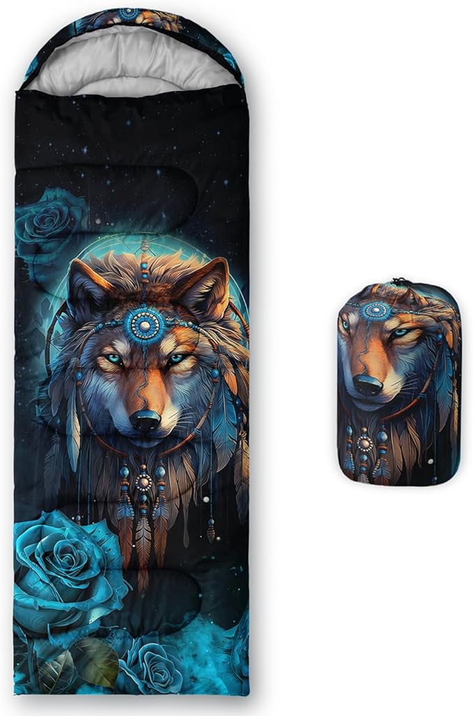 - 【Fashion Design】The camping sleeping bag is designed with wolf pattern.This sleeping bag is lightweight and easy to carry,suitable for outdoor camping and hiking.Our sleeping bags are designed to provide much-needed rest after a long day outdoors.