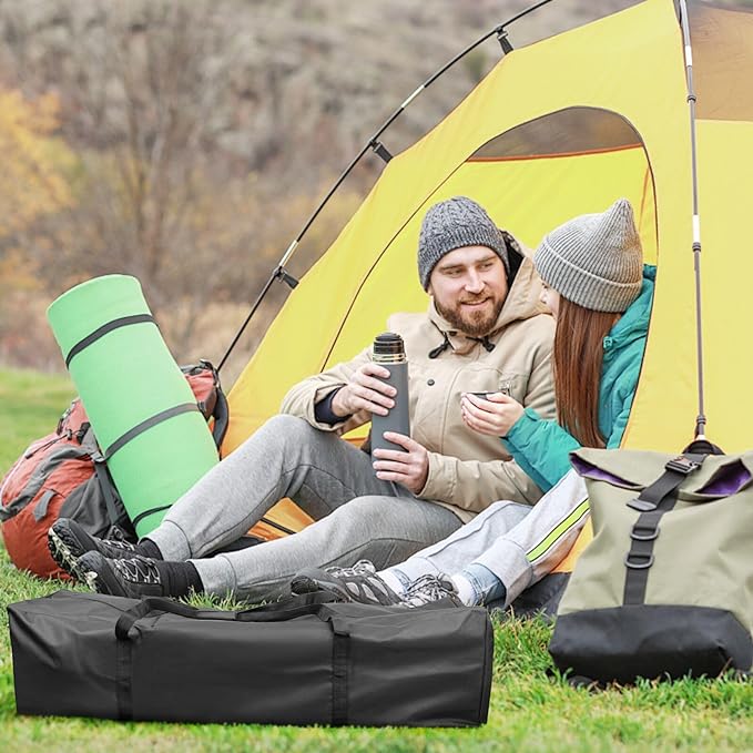 - EASY TO STORE: Our duffel bag can be folded into a small 9.8*9*2.3 Inch/25*23*6CM cube, which is easy to store and does not take up space. It can also be used as a tent bag, equipment bag, travel bag, and camping bag. When you need to store large items or a large number of items, it will surely bring a surprise to your life