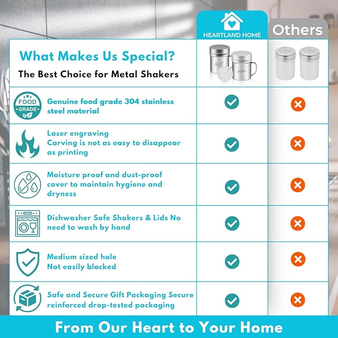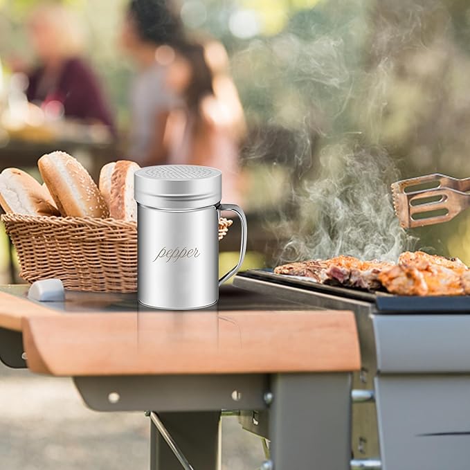 - MULTIPLE USAGES: Our stainless steel dredge shaker can hold various things, like peppers, candies, and and many other different kinds of spices ; It is also suitable for you to place it in your kitchen, restaurant, barbecue and many other indoor or outdoor occasions,or decorate desserts quickly!