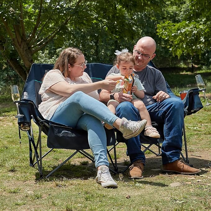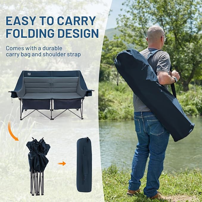 - SUPPORTS UP TO 600 LBS: Built with a sturdy steel frame and durable 600D fabric, this camping loveseat easily holds up to 600 lbs, making it perfect for outdoor lounging with family and friends
