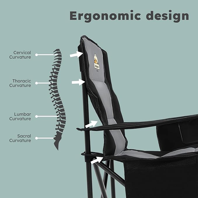- 【COZY SEATING】This camping chair is designed to provide maximum comfort and versatility. It has an extended design that offers more leg room,adjustable armrests to ensure a comfortable sitting position from any angle.With an increased thickness of the sponge pad,Whether you are outdoors or indoors,this chair allows you to relax and unwind with great comfort