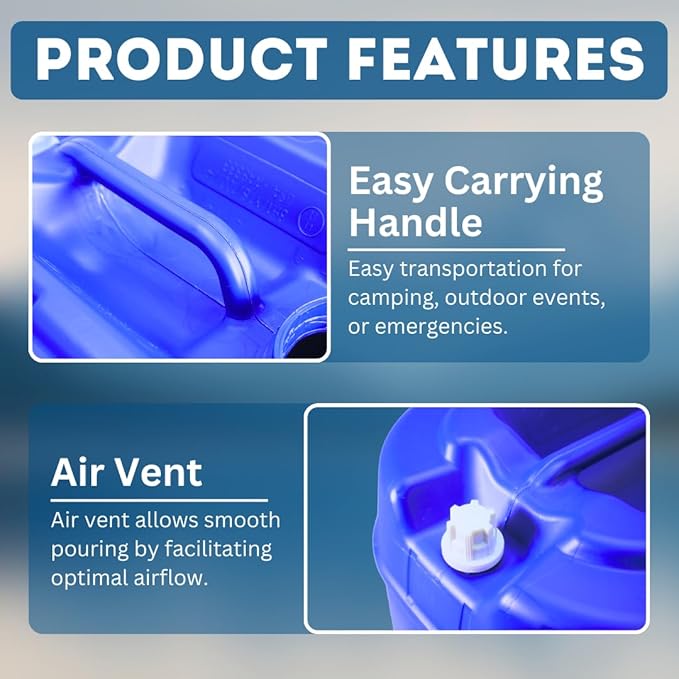 - Durable Storage: Made of food-grade plastic, this water storage container is built to last with a sturdy design able to hold up to 5 gallons of water.
