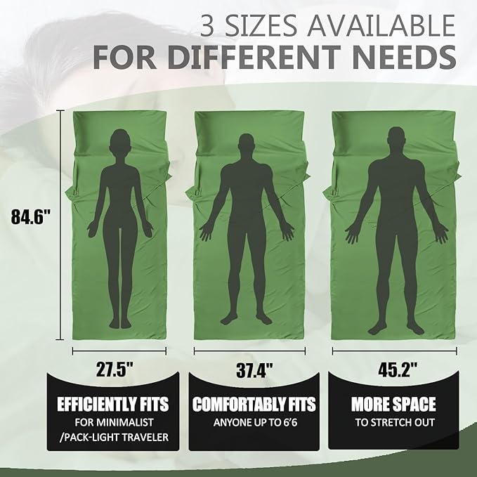 - Versatile Use: Our sleeping bag liner is the perfect addition to your outdoor sleep system or serves as a warm-weather ultralight sleeping bag. It's also the ideal companion for various scenarios. Whether you're staying in a hostel, enduring long bus rides, or embarking on plane journeys, this liner adds extra warmth and acts as a protective barrier.