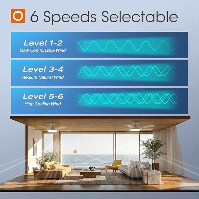 - Reversible DC Motor: The high-quality & high-speed motor brings a perfect wind experience. The wind speed can be adjusted in 6 gears, you can choose between comfortable wind, natural wind and strong wind. Reversible dual-direction fan improves air circulation to keep you warm in winter and cool in summer. Our fan blades are double sided in different colors, one side is white and the other side is yellow wood grain. Choose the fan blade color that best fits your home decor!