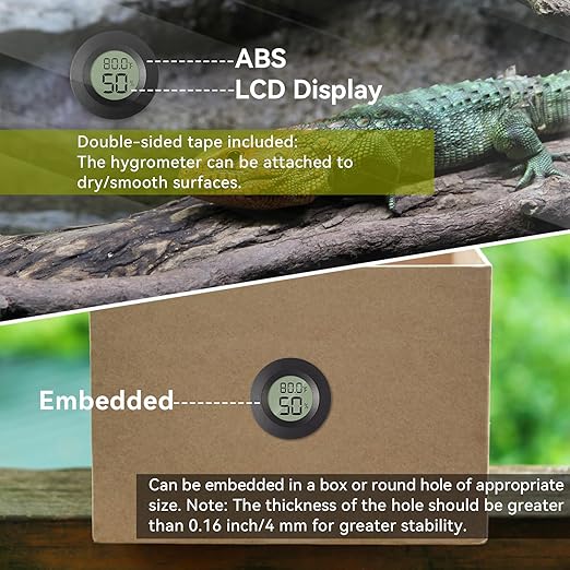- [ Small and Portable, Can be pasted or inlaid ] Diameter: 1.8" (4.5cm) , Thickness: 0.55" (1.4cm). Widely used for home, office, car, cellar, tank, humidifiers, 3d printer, jars, Caring for reptiles, etc. Can be pasted on the wall, or punched and embedded in boxes, barrels, glass jars etc.