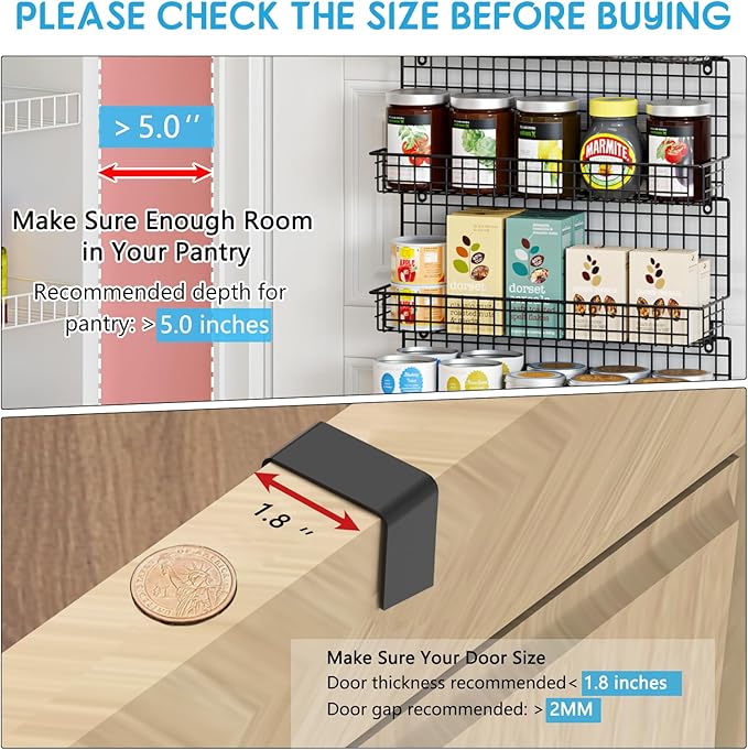 - 【Easy Installation】: Installing our spice rack is simple and straightforward. Secure it to the wall or door using the included screws. You can freely customize the arrangement by combining different-sized racks, adjusting spacing as needed, and using them together or separately.