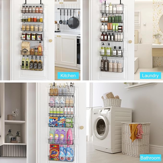 JKsmart High Capacity 6-Tier Spice Rack Organizer with Door Hook, Wall-Mounted & Over-the-Door for Kitchen Pantry Cabinet - Black