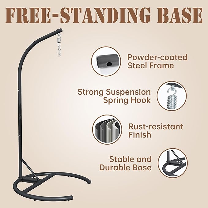 - Powder-coated steel frame is rust-resistant and weather-resistant, also UV-protected and water-resistant PE rattan swing hammock chair with stand is for durability and strength, ensuring their longevity even in outdoor environments.