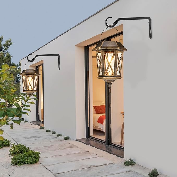 8 inch Plant Hanger, Sturdy Hanging Plant Bracket Outdoor, Hanging Plant Wall Hook Heavy Duty, for Hanging Bird Feeders, Planters, Lanterns, Wind Chimes, Indoor/Outdoor Use, Black, Set of 2