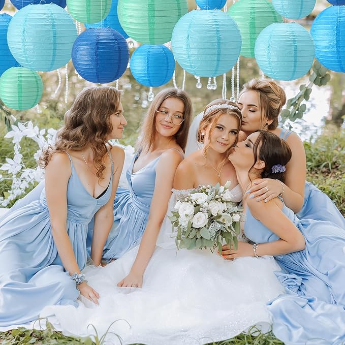 - Size Information: our hanging paper lanterns party decorations are available in 4 different sizes (10 inches, 8 inches, 6 inches and 4 inches) and 4 colors (royal blue, sky blue, light blue and turquoise blue); And the size is measured by hand, there may be a slight error