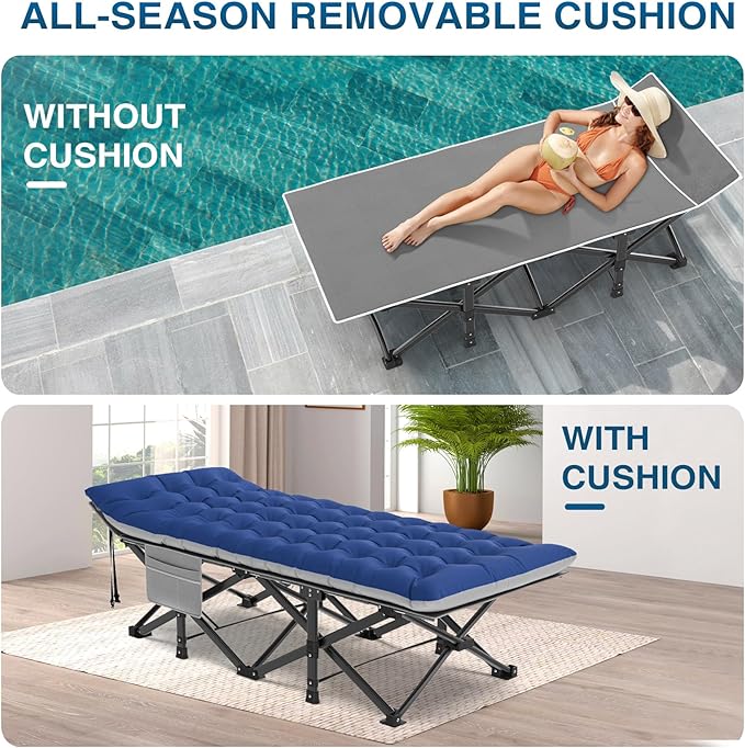 - Whisper-Quiet Sleep Experience: Dream sweetly with ZENPETIO’s sleeping cot, your foundation for a restful night outdoors or indoors. The high-quality cotton pad soothes your skin, while the sturdy metal frame ensures no squeaks, perfect for outdoor camps, guest stays, family visits, or anywhere you need a portable cot/bed.