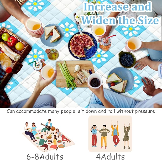 - 🚵♀️⛺🏖️【Larger and Thicker Design】This waterproof blanket can accommodate 6-8 people and can be used as a beach blanket,It create a designated space for family and friends to gather, eat together, play games, or simply enjoy each other's outdoors. They promote a sense of togetherness and make outdoor experiences more memorable and comfortable.