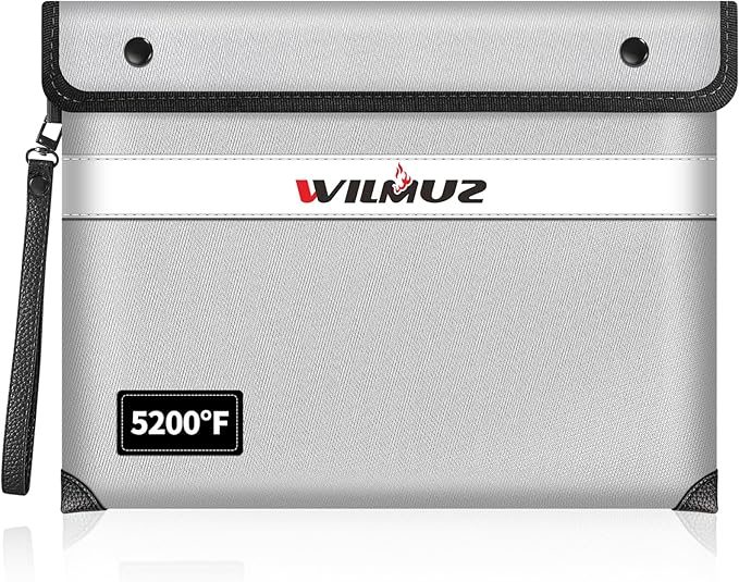 - 🧯【Reliable Material】This Wilmuz fireproof bag uses high-quality fireproof materials. From the outside to the inside, it is composed of eight layers of materials such as glass fiber cloth,heat insulation cotton, and aluminum foil, making it pass Global Flammability Standards (US labs) and Vertical Combustion Testing ( SGS UL94 V-1) certification, enough to withstand high temperature of 5200℉. its edge seams have been strictly waterproofed to withstand high-speed jets of fire hose.