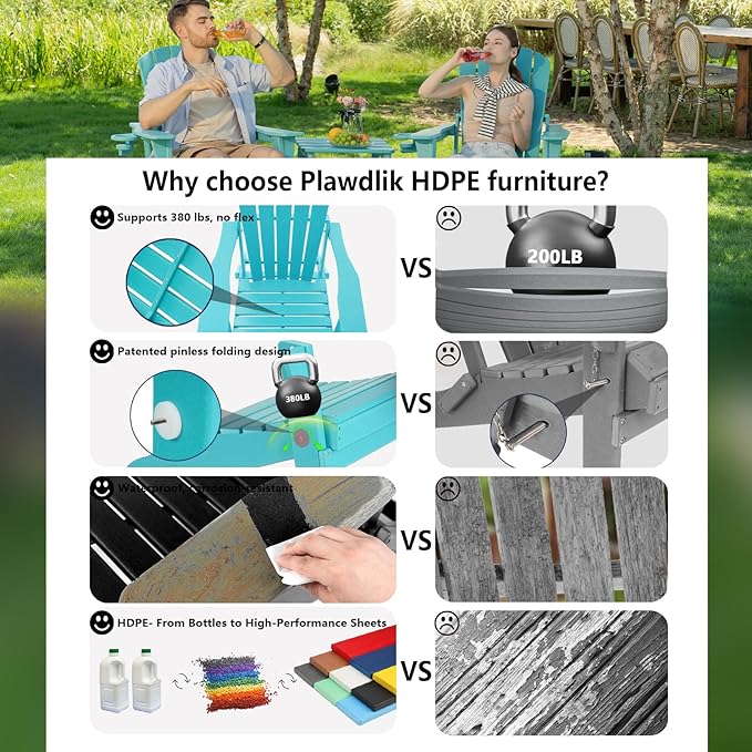 - ☘️【aesthetics】 When you put Plawdlik adirondack chair set of 2 or 13 together, you will be surprised to find that they all basically keep the same color and texture,Will make the overall aesthetics of your patio stronger