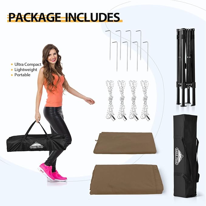 EAGLE PEAK EAGLE PEAK Flex Ultra Compact Pop-up Canopy, Sun Shelter, Changing Room, Portable Privacy Canopy Cabana, 4x4ft Canopy Tent, for Pool, Fashion Photoshoots, or Camping Brown